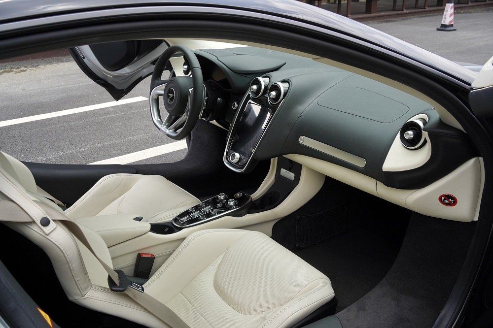 拉開邁凱倫家族獨有的(de)蝴蝶門,坐(zuò)進單體式碳纖維座艙。邁凱倫GT采用(yòng)了(le)大(dà)面積Nappa真皮将整個(gè)車内部包裹,少了(le)一絲戰鬥的(de)氣息卻多(duō)了(le)奢華與優雅的(de)氛圍。