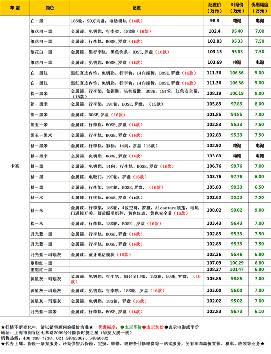 新一代卡宴仍然沒有忘懷保時(shí)捷品牌的(de)初衷,以一副生而硬朗的(de)強健底子,擔起性能車主對(duì)于保時(shí)捷作品的(de)高(gāo)度期望。葉隆保時(shí)捷之星16款保時(shí)捷卡宴油耗測評,到店(diàn)購(gòu)車有驚喜豪禮,低價預訂中,顔色齊全,手續正規。低折扣促銷,詳情電議(yì)。詳情撥打24小時(shí)購(gòu)車電話(huà):400-888-7738。