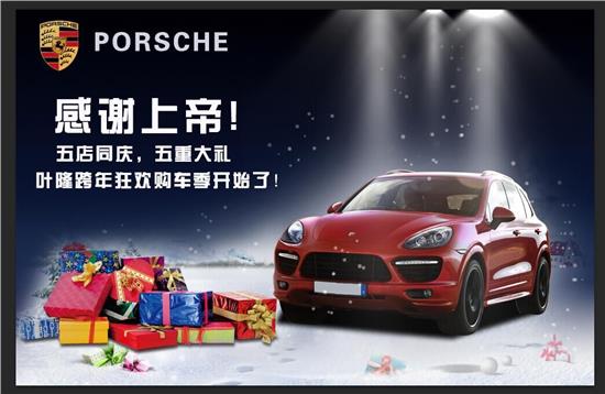現在葉隆保時(shí)捷之星歲末狂歡跨年購(gòu)車季,五店(diàn)同慶,五重好禮!歡迎新老顧客前來(lái)選購(gòu)!貴賓熱(rè)線:400-888-7738.