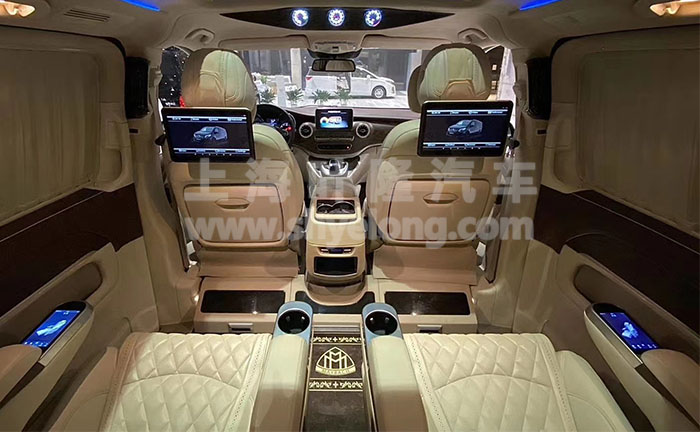 奔馳V260改裝邁巴赫版本,大(dà)家看一下(xià)它整個(gè)的(de)一個(gè)前臉吧其實是進行一個(gè)改動的(de),它這(zhè)台車呢(ne)是改成一個(gè)邁巴赫的(de)版本,原車的(de)話(huà)它是奪目的(de)大(dà)标,兩個(gè)平行連接都鍍鉻過來(lái),但是它說改成一個(gè)直瀑式這(zhè)樣的(de)進氣格欄可(kě)以看到這(zhè)個(gè)改動會讓這(zhè)台車看起來(lái)比較大(dà)氣沉穩一些。