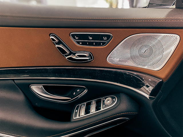 赫菲勒奔馳S450内飾應該是奔馳S級的(de)最大(dà)亮點了(le), 赫菲勒奔馳 S450中控台采用(yòng)大(dà)量高(gāo)品質實木(mù)面闆精巧的(de)中央送風口和(hé)指針式時(shí)鐘(zhōng)完美(měi)鑲嵌,其中内飾中最大(dà)面積的(de)電子裝備就是12.3英寸的(de)兩塊高(gāo)分(fēn)辨率屏幕了(le)。車内實木(mù)與真皮相間包裹所帶來(lái)的(de)視覺效果和(hé)手感都飽滿堅挺。方向盤和(hé)中控台等處用(yòng)桃木(mù)色加以裝飾,透露出濃重的(de)商業氣氛。